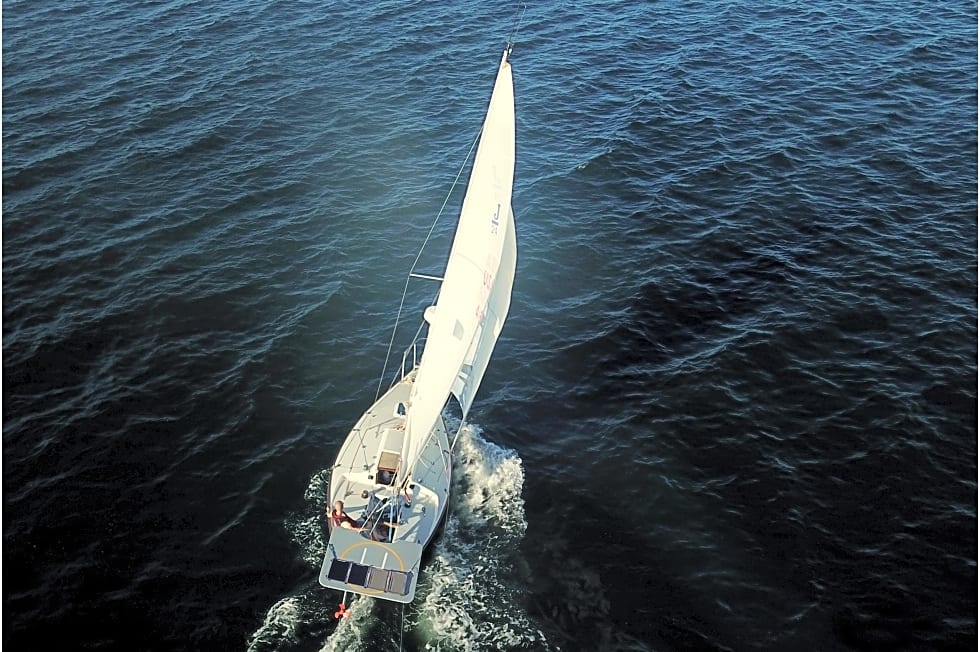 End grained balsa core construction with hand laid‑up glass in both hull and deck Vinylester resin in outer hull skin Full structural main bulkhead glassed to hull and deck Heavy duty stainless chain plates bolted to main bulkhead Anodized aluminum mast bearing beam, glassed to hull and grounded to keel Low maintenance molded V‑berth unit bonded to the hull to form watertight compartment Aft storage compartments port and starboard with access from below Self‑bailing cockpit Molded positive traction non‑skid surface on deck Hull and deck joint bonded with Plexus structural adhesive